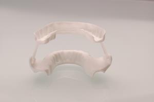 Die Narval CC Protrusionsschiene eine CAD/CAM gefertigte Spezialschiene, bestehend aus zwei speziell für den einzelnen Patienten gefertigten Spezialschienen. Diese sind an beiden Seiten mit zwei Führungsstegen verbunden, wodurch der Unterkiefer etwas vorverlagert wird. Dieses Vorverlagern bewirkt eine Öffnung der Atemwege und reduziert somit die Geschwindigkeit des Luftstroms. Die Narval CC Protrusionsschiene wird exclusiv in Lyon/ Frankreich gefertig. Wir agieren als Deutsches Partnerlabor für die Firma ResMed Healtcare.